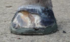 I was called out to this horse as a referral lameness issue. On inspection I found that it had seedy toe. After looking at x-rays the hoof was debrided back to healthy tissue.