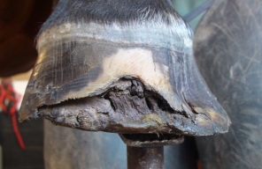 I see more seedy toe than I should in this day and age. I see lots of horses with such chronic conditions that I have to take off sometimes a third of the hoof wall to tackle the necrotic area in which the fungus has spread. This should be addressed much sooner when it first appears, which is usually at the toe. It's no good just poking a nail up inside the wall to clean it out and spraying purple spray. The wall needs to be debrided and all the infected area cut back to healthy tissue.